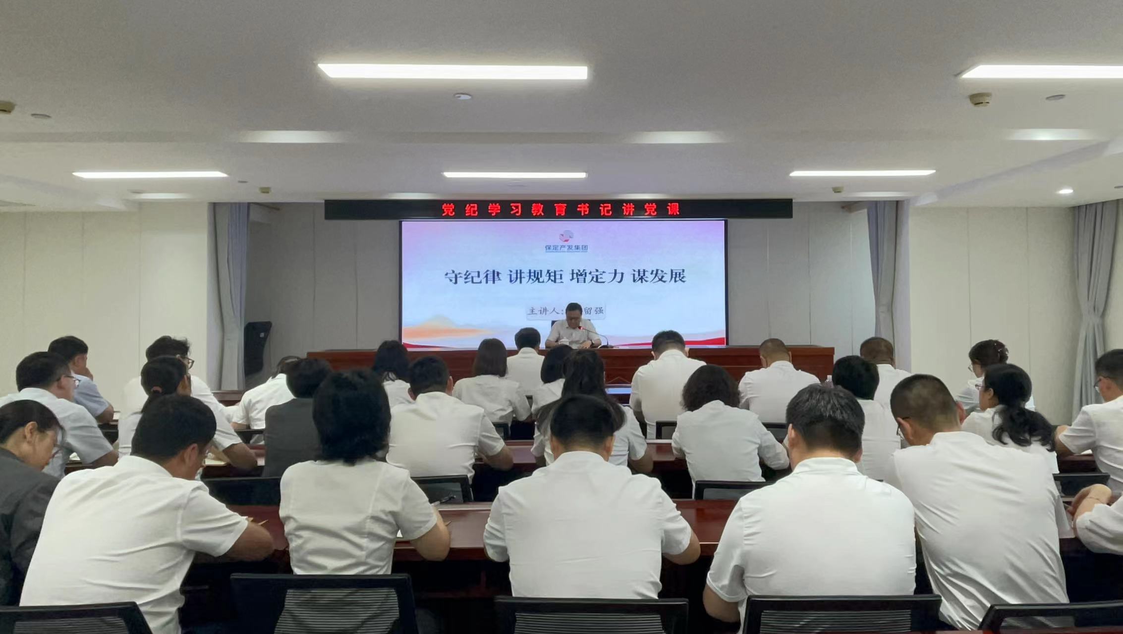 ??7月9日,按照黨紀(jì)學(xué)習(xí)教育工作要求,集團(tuán)黨委書記、董事長(zhǎng)趙留強(qiáng)以《守紀(jì)律 講規(guī)矩 增定力 謀發(fā)展》為題講授主題黨課。集團(tuán)黨委委員紀(jì)委書記孫曉靜、各子公司及各部門中層副職以上領(lǐng)導(dǎo)干部和全體黨員參會(huì)。
